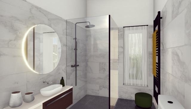 房屋供暖和制冷均由威能热泵提供,一楼和二楼独立,天花板和地板可通过威能房间温控器和手机应用程序分别控制,浴室配有地暖和电热毛巾烘干机。