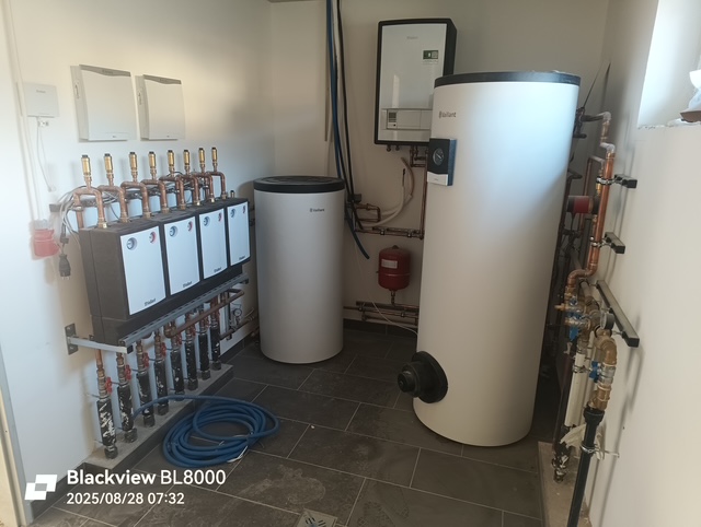 Villant 300 升 DHW 水箱,带循环管路,可通过 Vaillant 房间温控器和手机应用程序控制。
