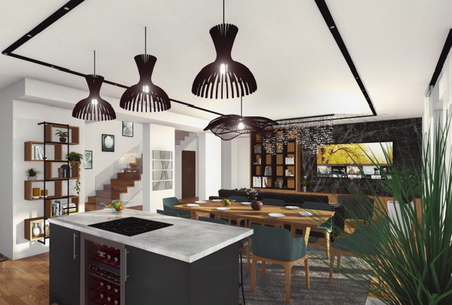 在房产的一楼,穿过令人印象深刻的铝制入口门,我们来到一个大厅,从这里向左是客用卫生间,向右是一个带客厅和餐厅的超大美式厨房,从那里我们还可以通过两扇露台门进入巨大的全景露台,继续走进建筑内部,左侧的单层楼梯通向楼上。径直走向建筑物的后面,我们在左侧看到通往车库的门,正前方是浴室(淋浴+马桶+洗脸盆),右侧是一个大房间,可以分成两个房间:衣柜+房间或书房+房间。到达二楼后,左侧第一间是父母的卧室,通向独立的浴室(淋浴间+卫生间+洗脸盆)。接下来是三间儿童房,可从阳台进入,欣赏壮丽的全景。返回走廊,对面是儿童浴室(转角浴缸+卫生间+洗脸盆)。洗衣房也位于二楼的独立房间内。回到一楼,穿过建筑和车库之间的门,您将来到一个露台,这里非常适合烧烤或泡热水澡,挡土墙保护着露台免受窥探。车库还为两辆大型汽车(甚至是电动汽车)提供了舒适的停放空间,因为配备了必要的充电桩。车库还设有一个独立的可上锁的机械工程室和一个储物区。