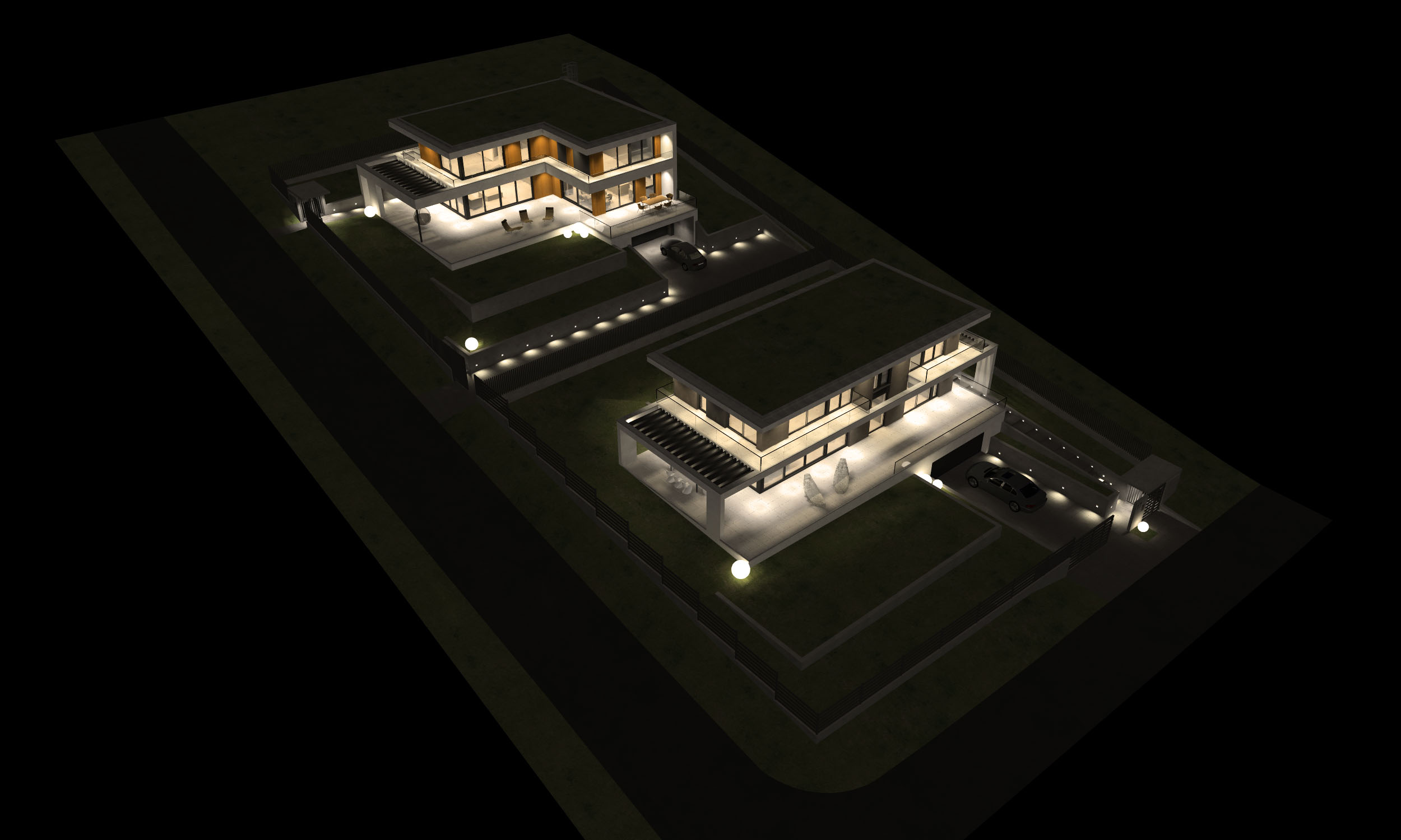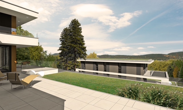 40平方公尺雙車位車庫、40平方公尺雙車位車道、寬敞的露台和陽台。