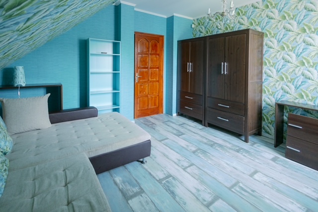 # 地板:客厅铺设美观的落叶松木地板,为空间增添自然温暖和格调。房间铺设地毯或复合木地板。