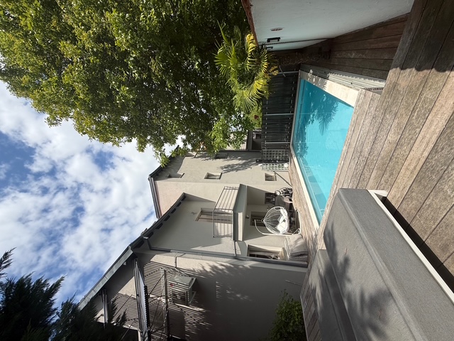 後面的露台上設有帶頸部淋浴的經濟型溫水游泳池,輔以覆蓋木材的陽光露台和太陽能淋浴 - 從春季到秋季的完美放鬆。