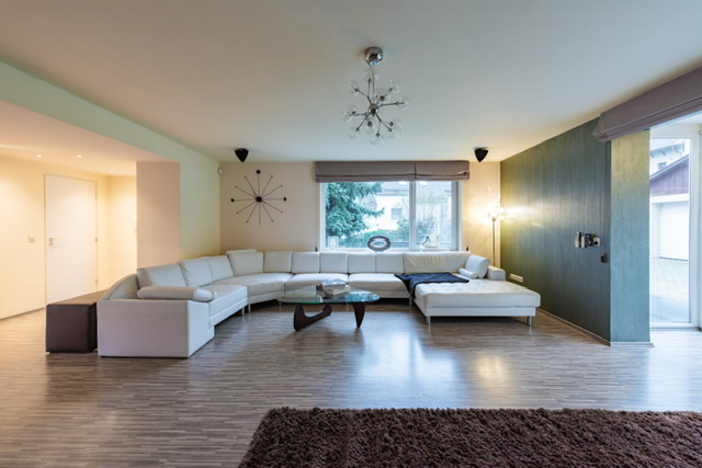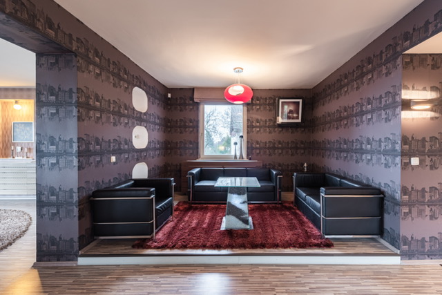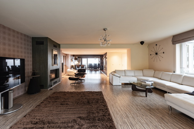 • 宽敞的客厅,配有真皮沙发、Noguchi餐桌、Bang & Olufsen音响系统