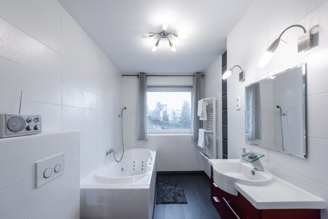 • 两间卧室,均配有独立卫生间、地毯和电动百叶窗
