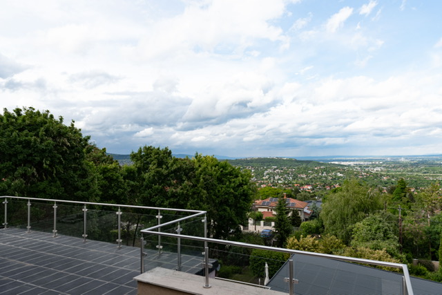 高高的混凝土围栏确保了地块的界限,并在花园和俯瞰城市的宽敞阳台上提供最大的私密性。