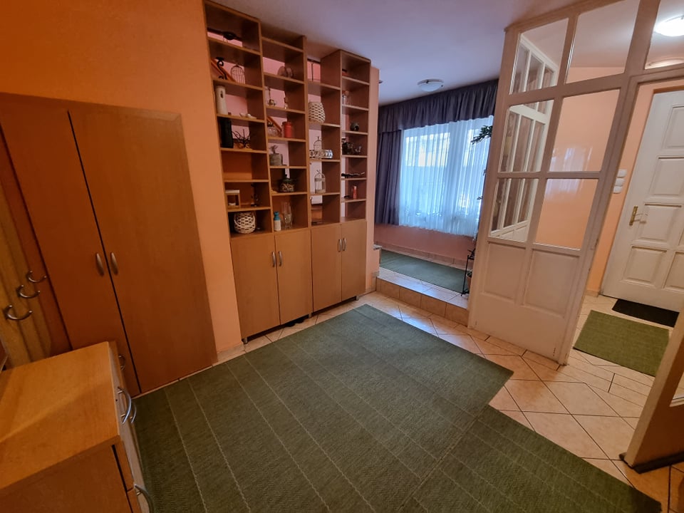 -előszoba szélfogóval, lépcső alatti beépített szekrénnyel
